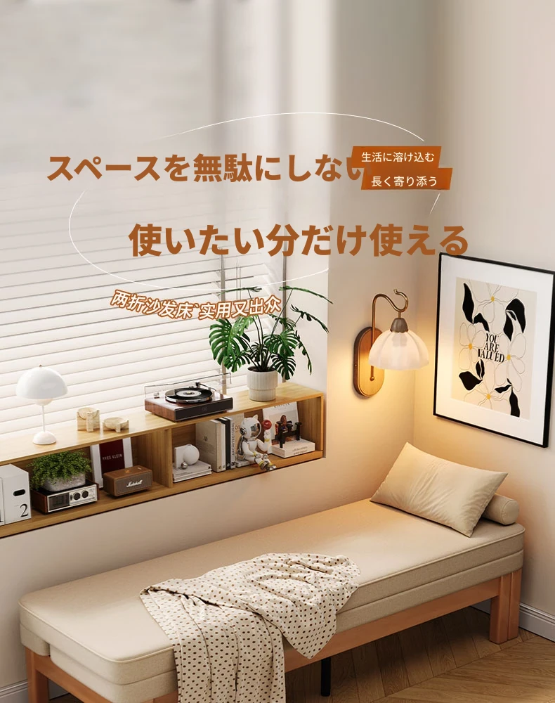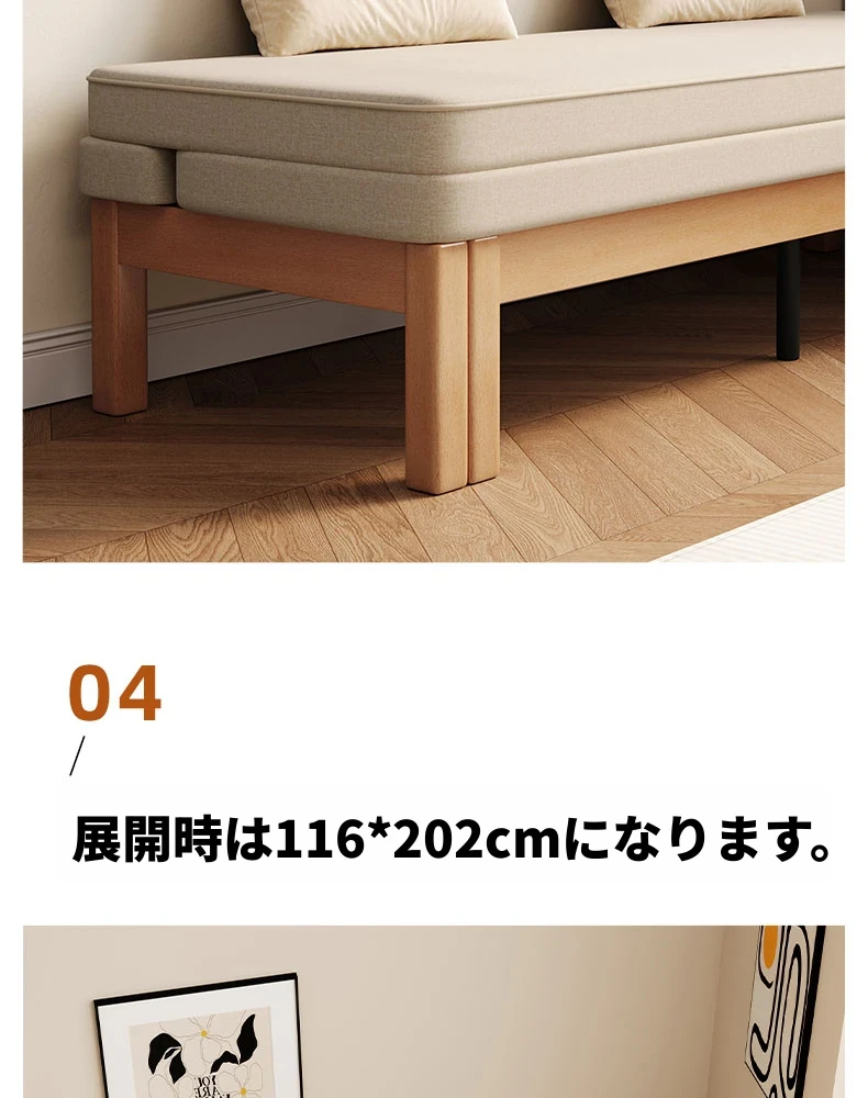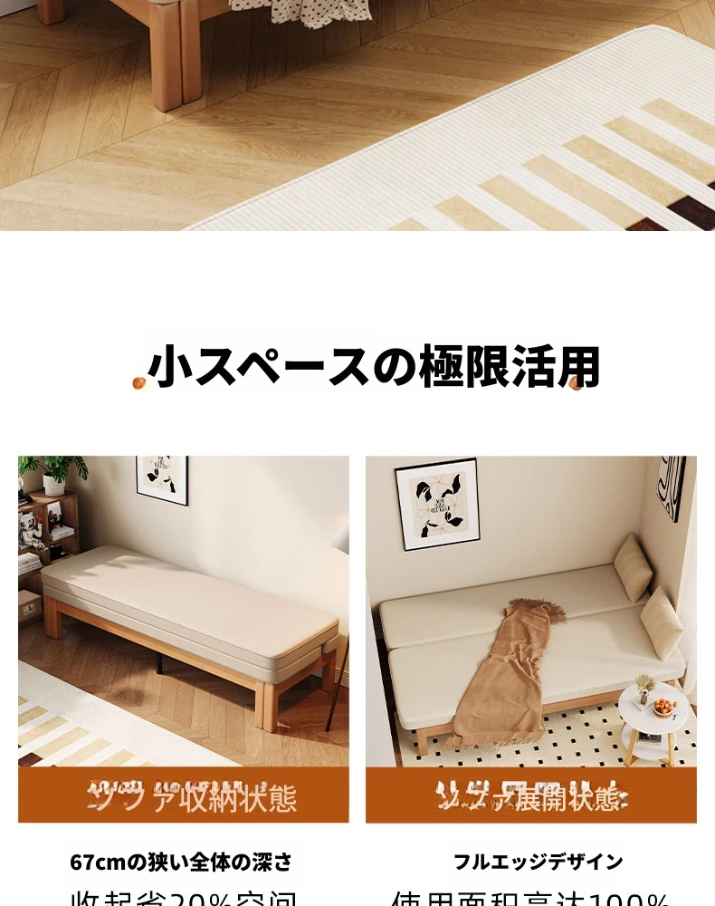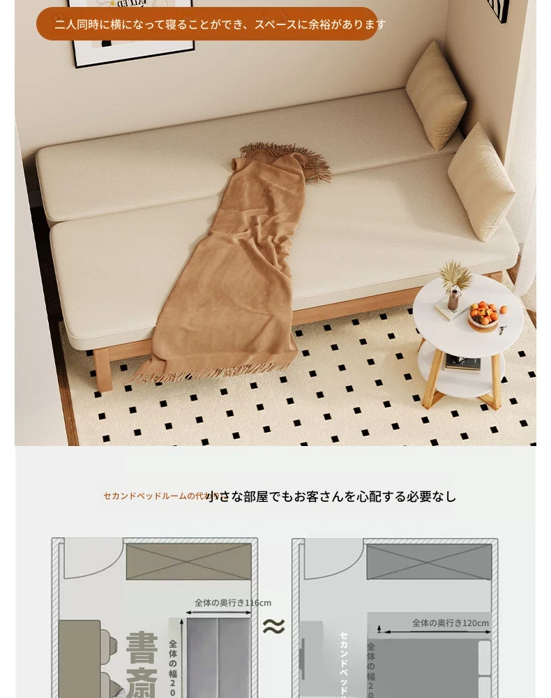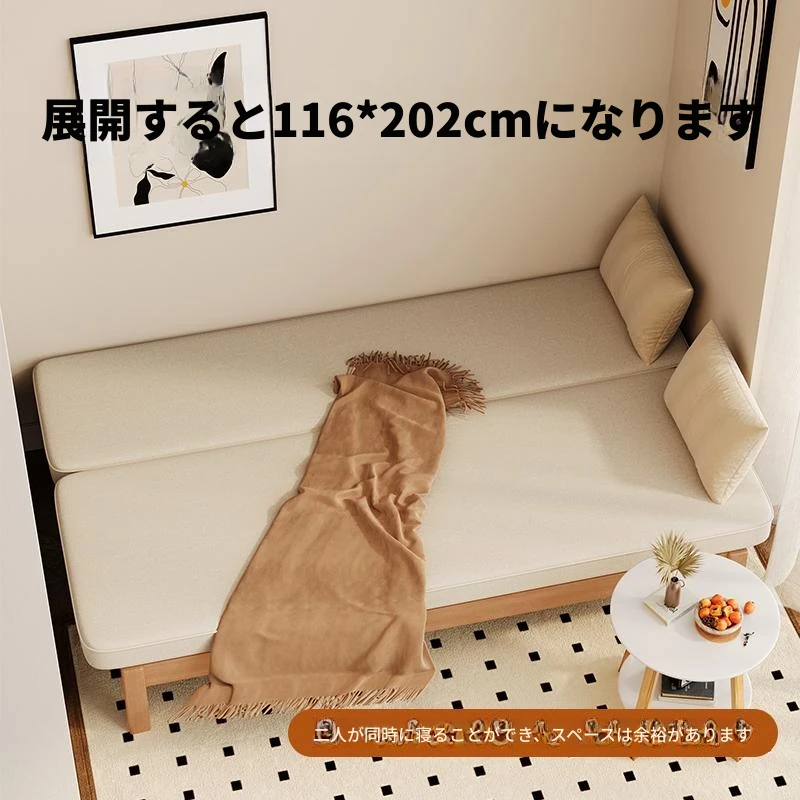 伸縮式ベッド 小型リビングに最適!天然木製 折りたたみソファベッド 二人用・一人用兼用の便利なスタイル 鉄製プッシュプル機構で簡単に変形可能!省スペースでおしゃれな空間を実現!