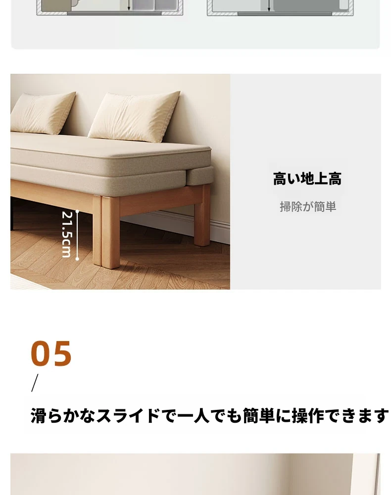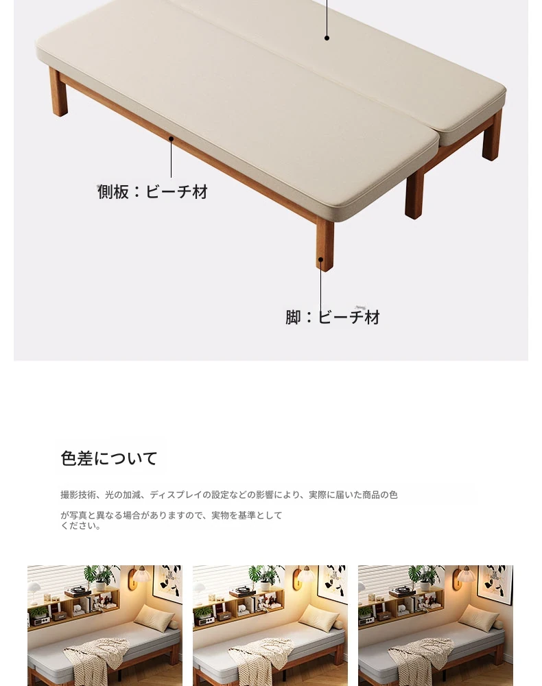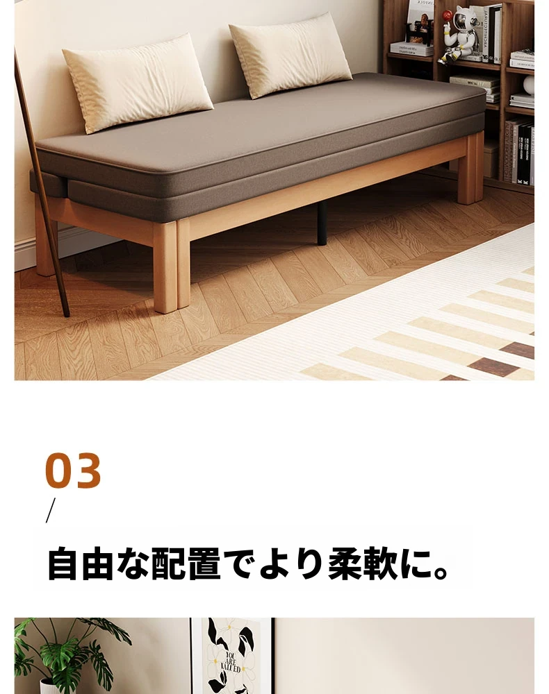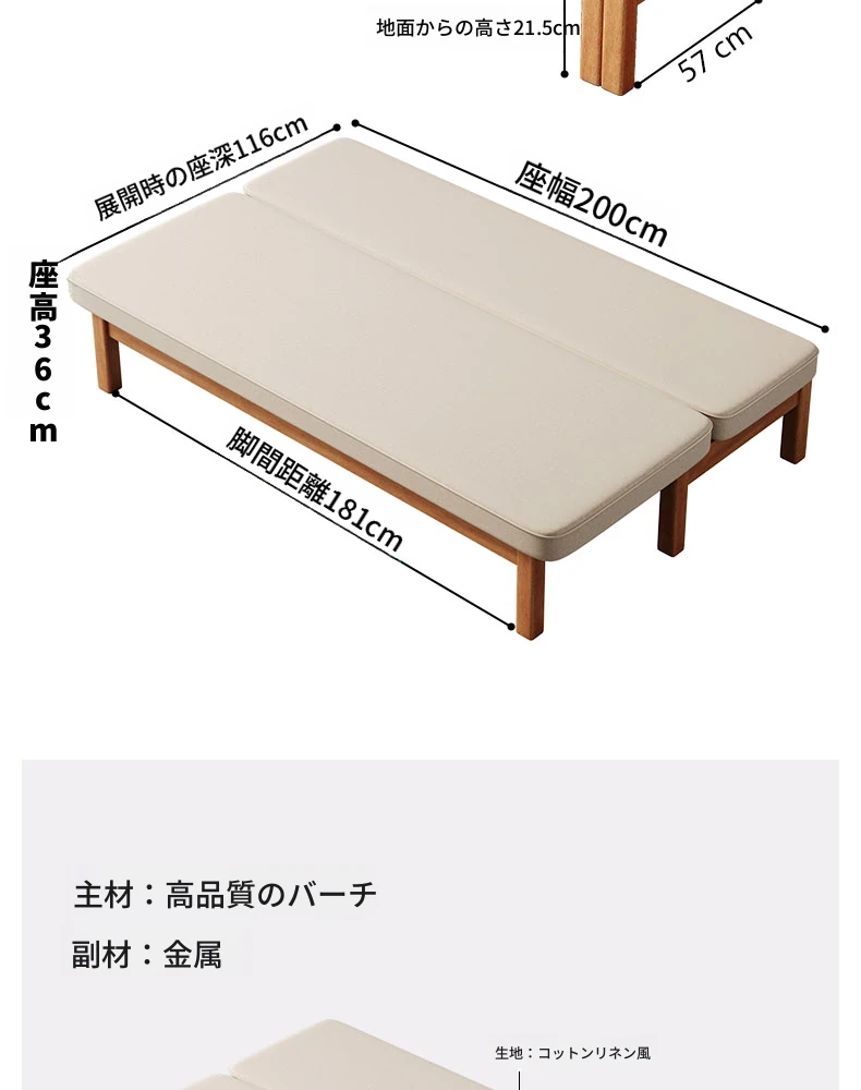 伸縮式ベッド 小型リビングに最適!天然木製 折りたたみソファベッド 二人用・一人用兼用の便利なスタイル 鉄製プッシュプル機構で簡単に変形可能!省スペースでおしゃれな空間を実現!