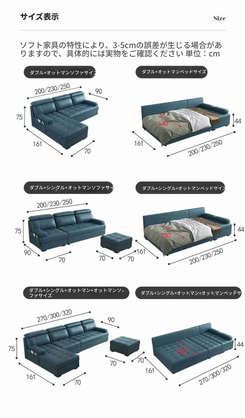 テクノロジー布丨ダブル+ユニット+フットレスト丨2.3メートル