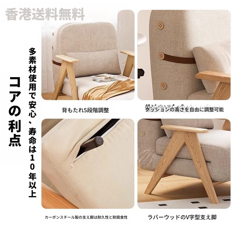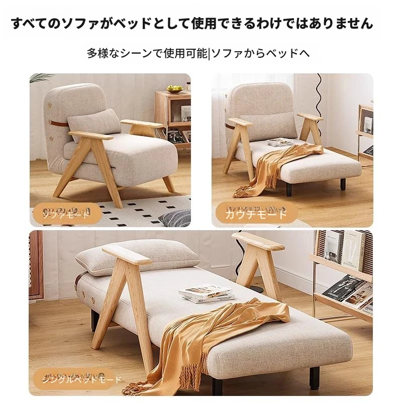 【香港製】無垢材のソファベッド!バルコニーやリビングにぴったりな日本式多機能伸縮折りたたみシングルベッド。おしゃれで便利な空間を実現!