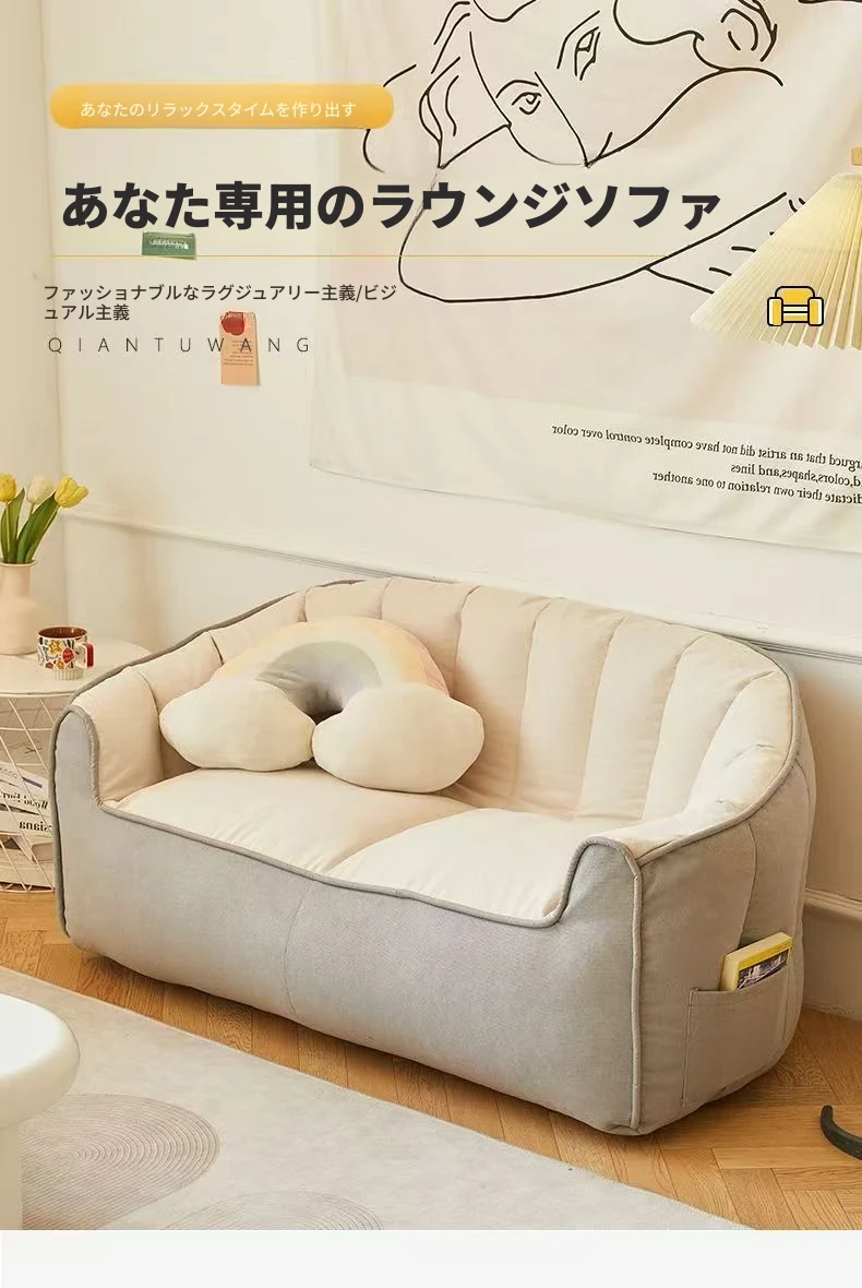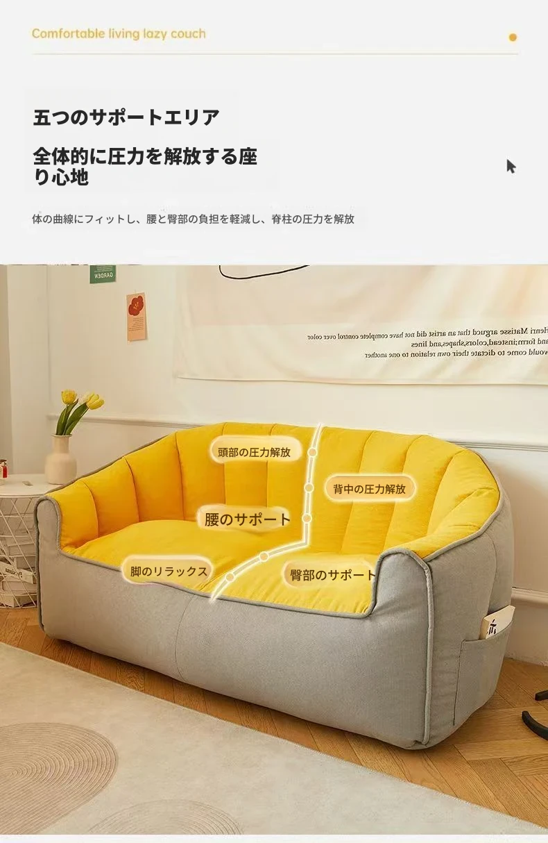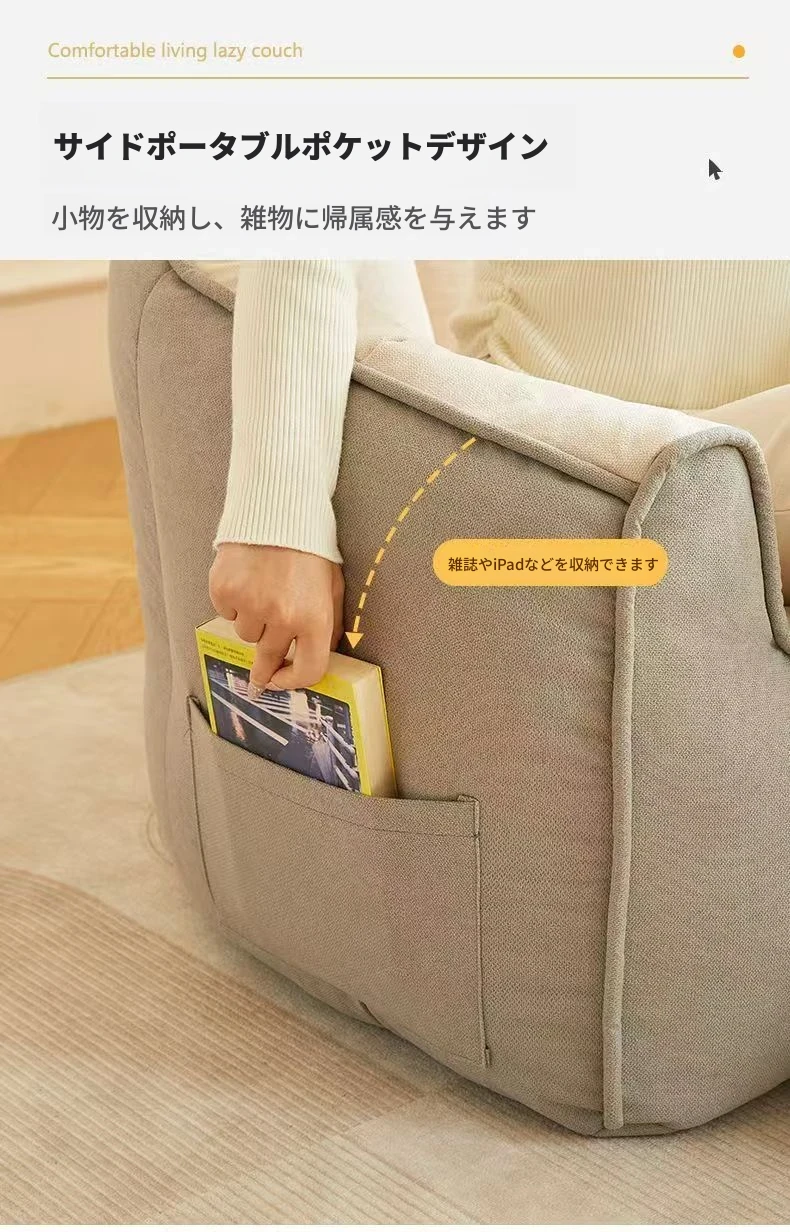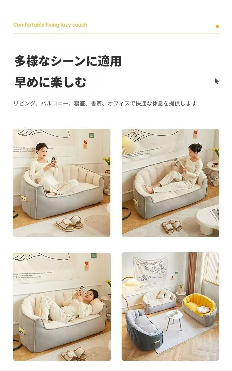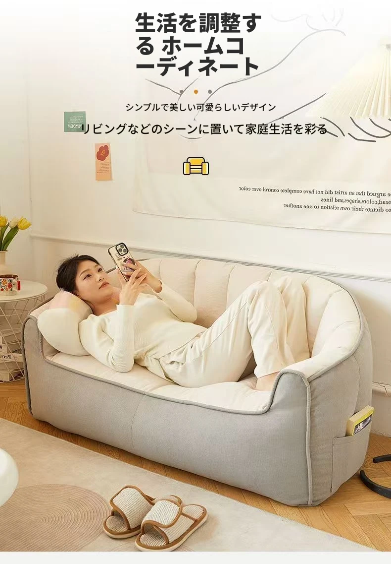 リラックスできる寝転びソファ!寝るも座るも自由自在、タタミスタイルの大容量デザイン。小さなリビングや学生寮にもぴったりの、シングル&ダブル対応の家庭用小型ソファ。あなたの快適な空間を演出します!