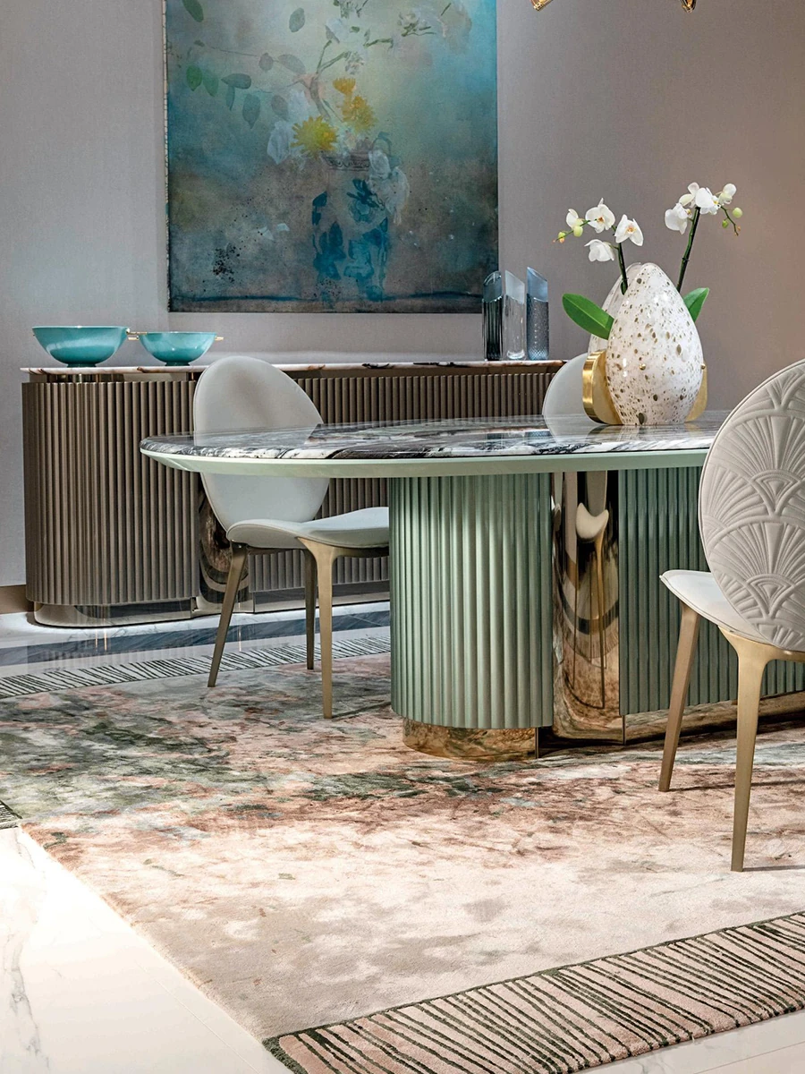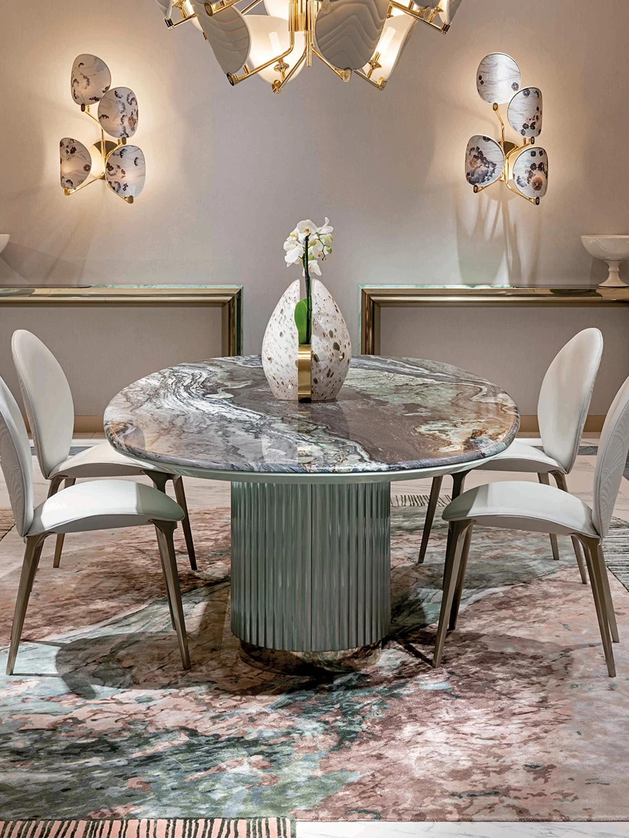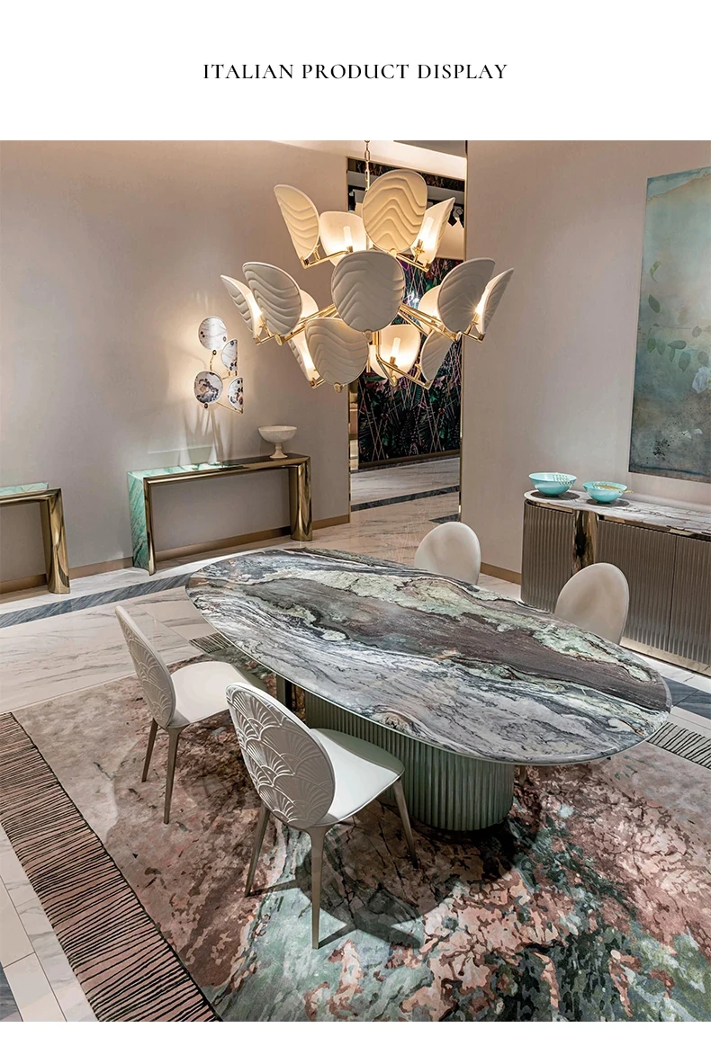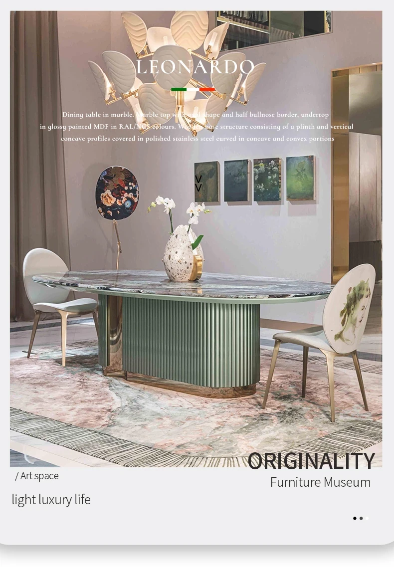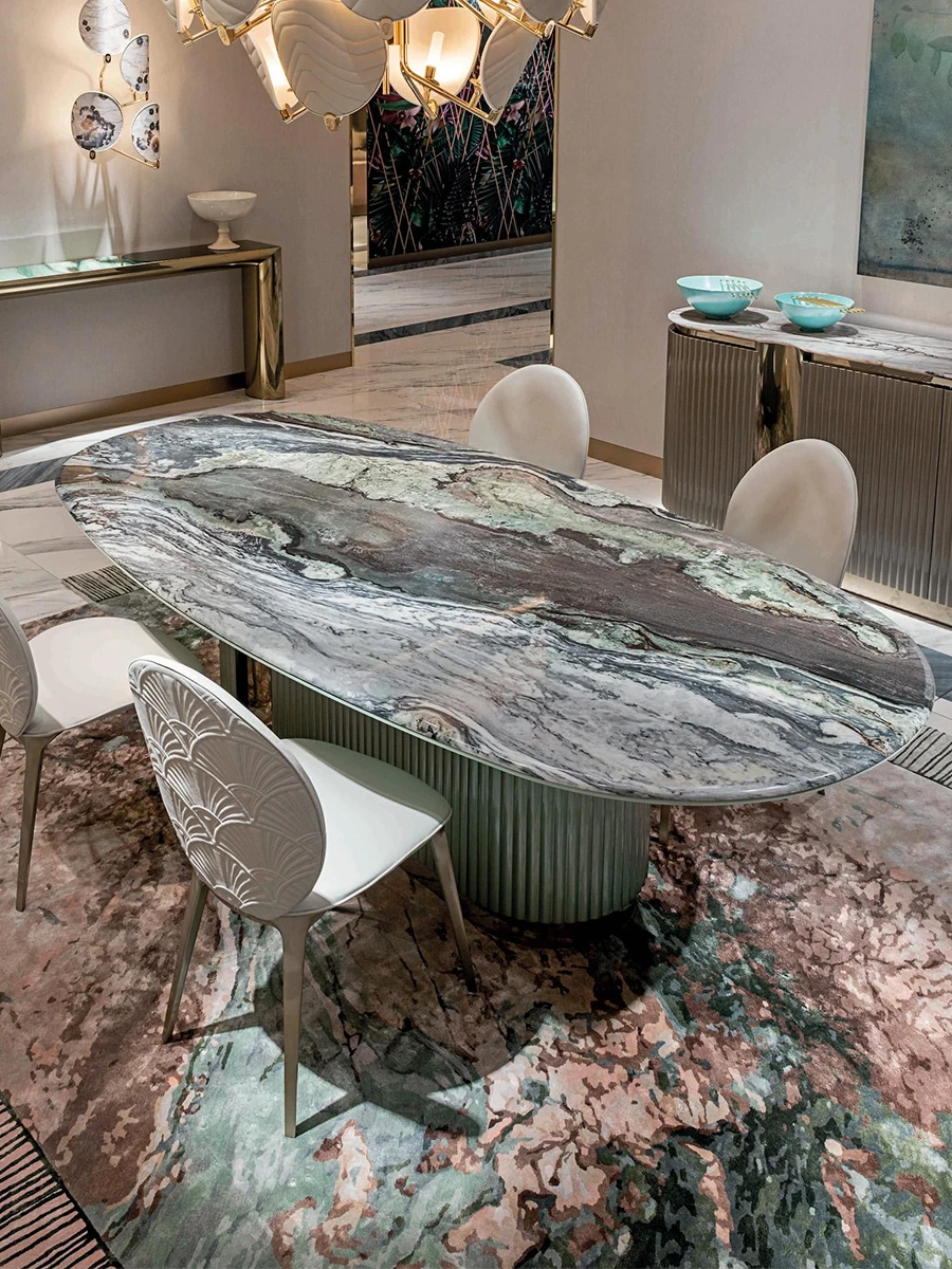 ヴィジョネール新作ラグジュアリー石材ヴィラダイニングテーブル イタリアン軽奢モダンエレガントな楕円形ステンレス製家庭用食卓