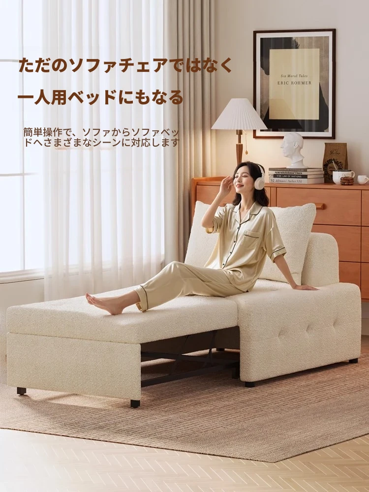クリーム風の折りたたみソファベッド - 新しいデザインの小型リビング向け、伸縮式の貴妃ソファベッドで、スペースを有効活用!快適な眠りとおしゃれなインテリアを両立。