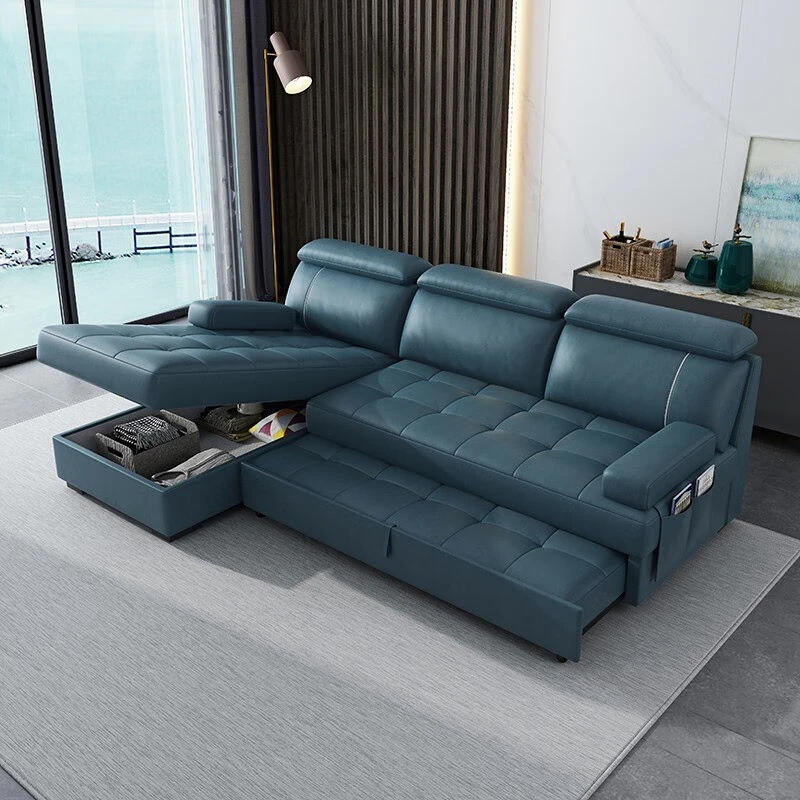 イタリアンスタイルの電動機能付き本革ソファベッド - リビングルームにぴったりな超広々とした現代的でシンプルなデザイン、家用に最適な2WAY伸縮式ベッド - 東莞よりお届け!