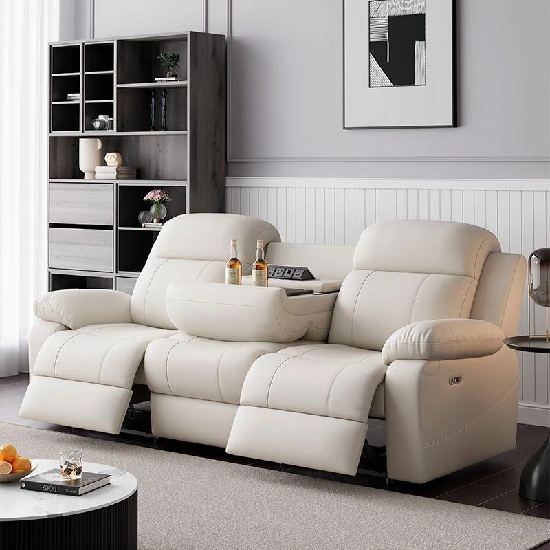 壁に寄せない!スペースを無駄にしない電動真皮マルチファンクションソファ。家庭用シアターにも最適!小型リビングにぴったりの3人掛けコンビネーション。快適な座り心地で、映画やゲームを楽しもう!