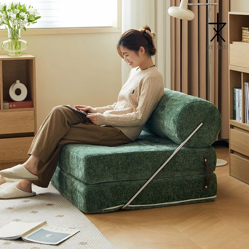 折りたたみ式無垢材ソファベッド|一体型・一人用|新中式デザイン|多機能・小型スペースに最適|2025年最新モデル!快適なオフィスやお部屋にぴったり!